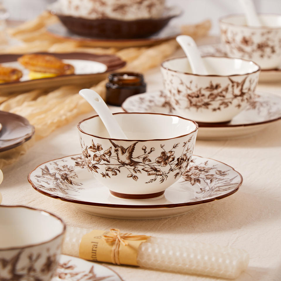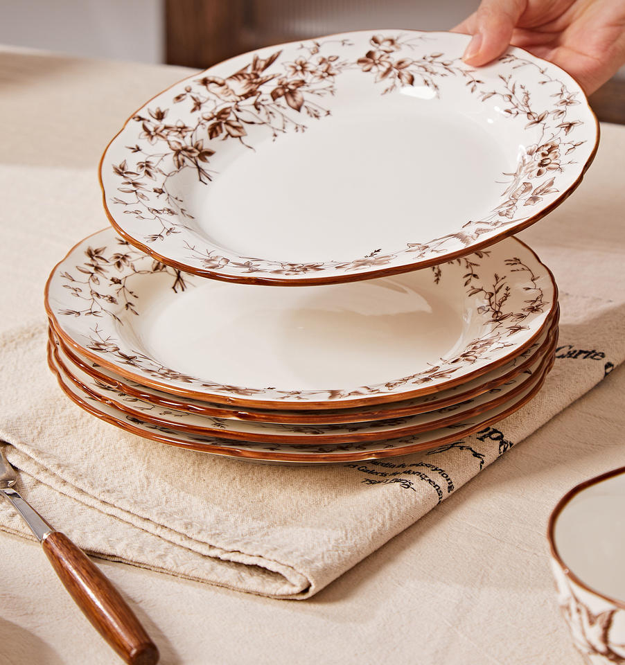 French Romantic Retro Floral Porcelain Tableware Set with Gorgeous Design for Home Ritual Dining & Family Dinner
