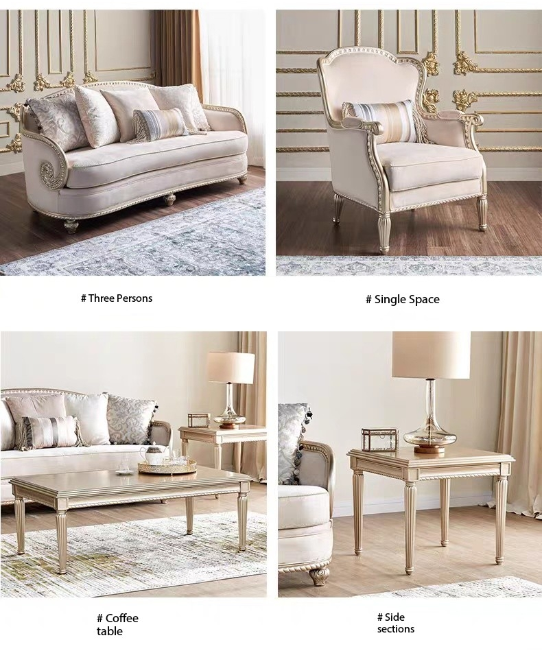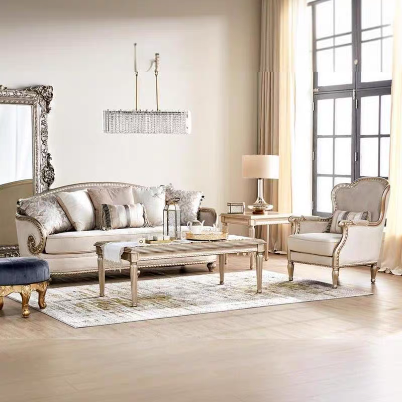 Set di Divani Classici in Stile Francese di Lusso Leggero in Legno Massello Intagliato per Soggiorno Appartamento Villa in Tessuto Anticato