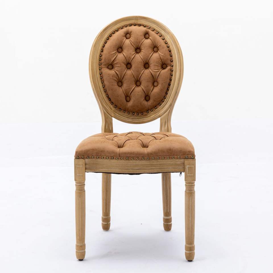 Sedia da Pranzo in Legno Massello Stile Francese con Decorazione Antica Dipinta a Mano, Fibbia e Finitura in Pelle Artificiale PU con Borchie