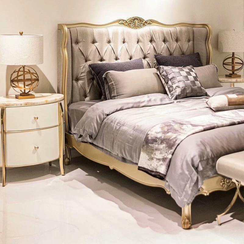 French Style Solid Wood Double Bed 1.8 Meters Light Luxury Bedroom Furniture King Size Soft Headboard for Apartment Living Room