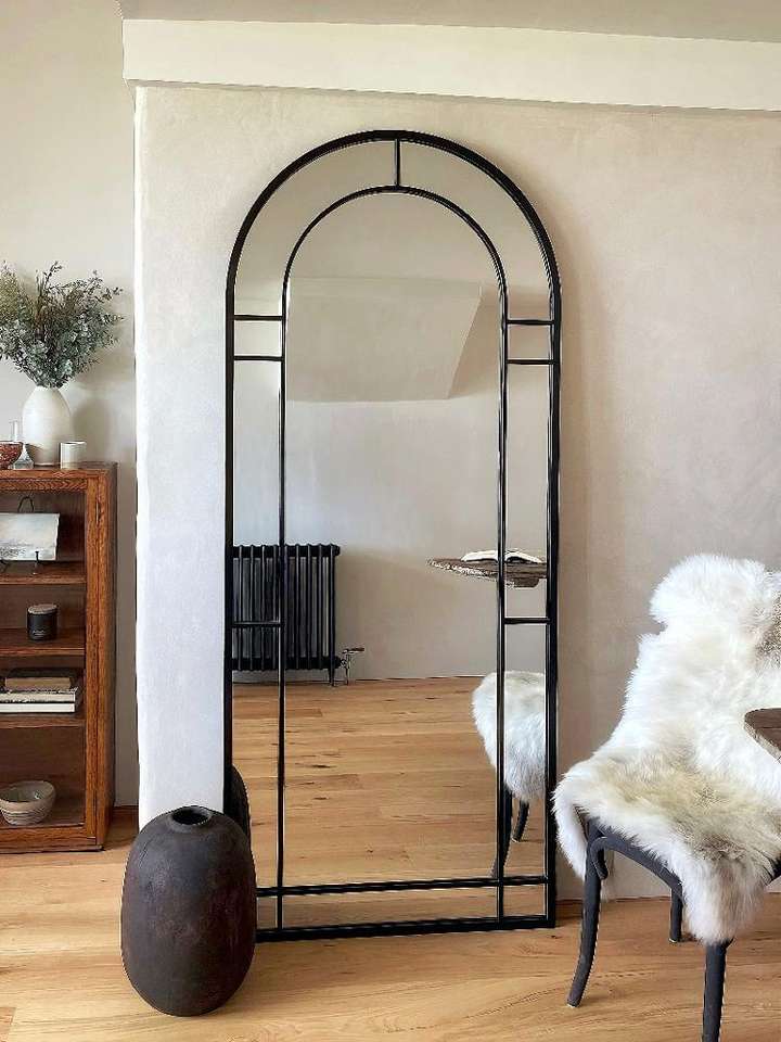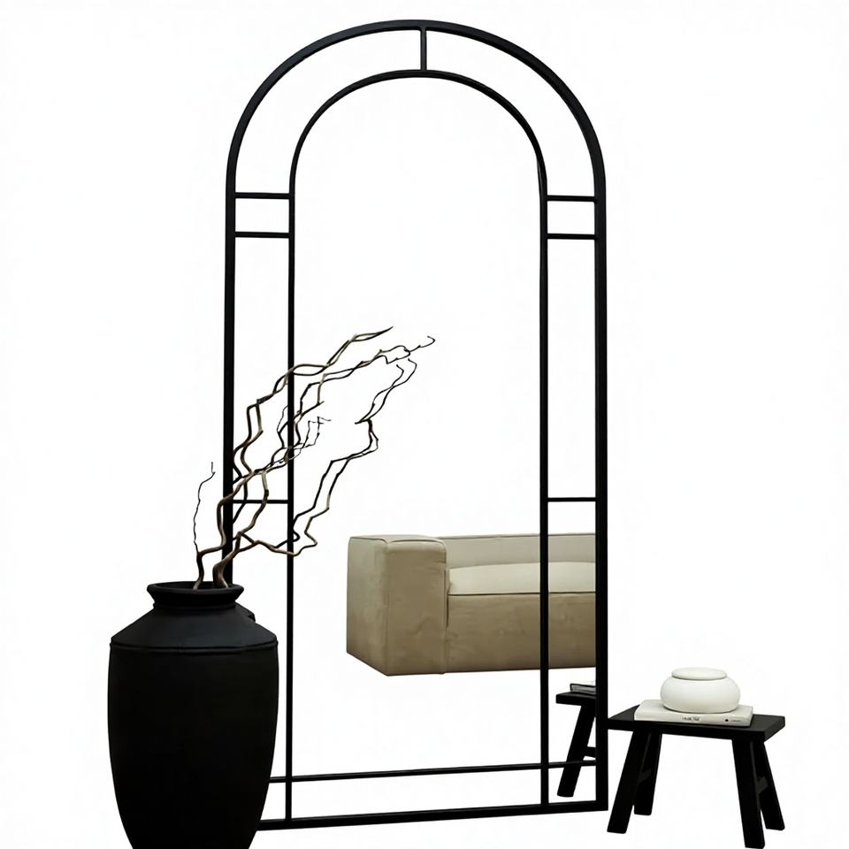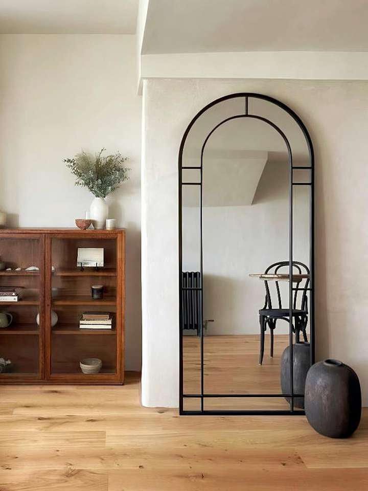 French Vintage Floor Mirror 190x80cm, Metal Frame & Wall Mountable, Retro Statement Piece for Bedroom, Hotel Decor