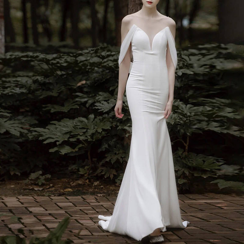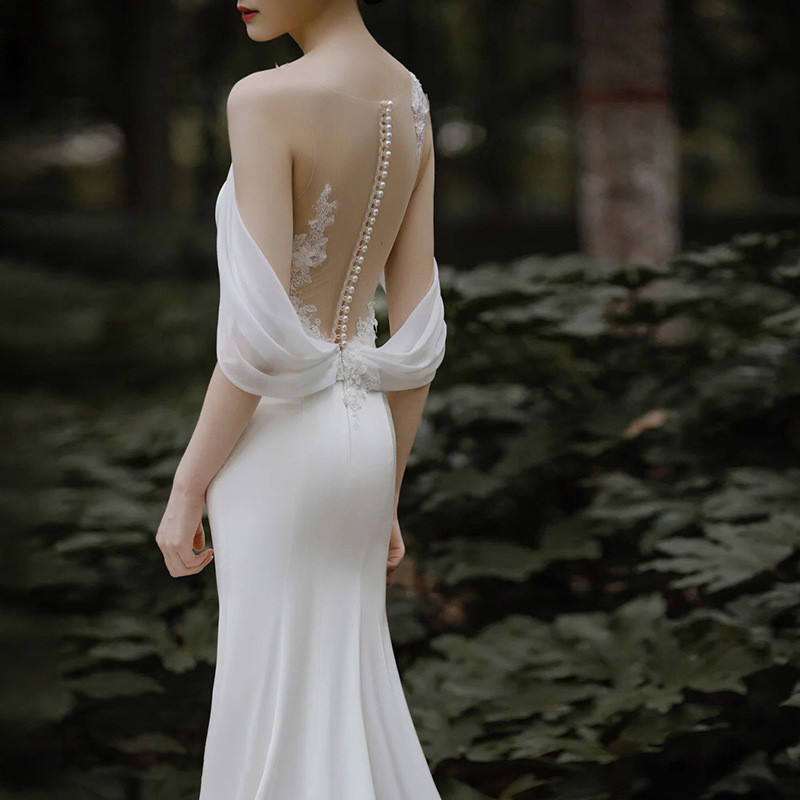 Abito da sposa in satin con dettagli in nastro bianco e regalo di guanti