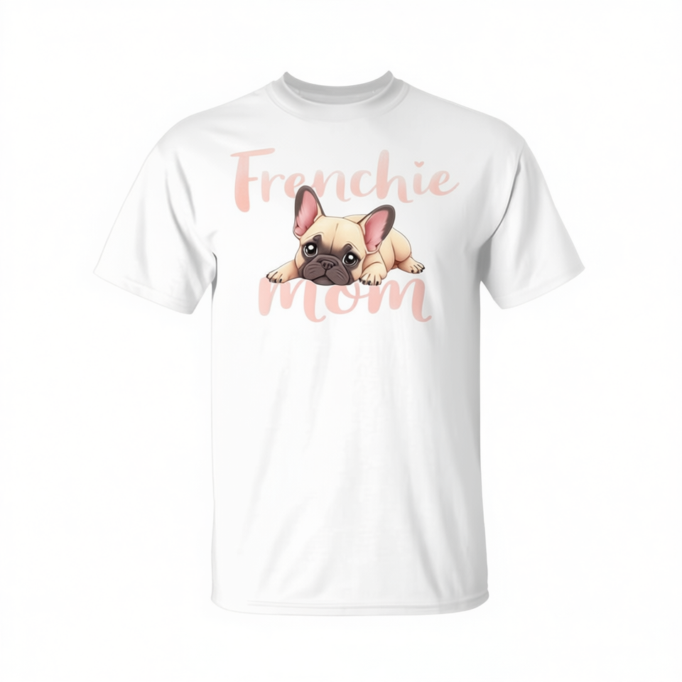 Frenchie Mom Dog T-Shirt Cute Puppy Design White Unisex Adult Size