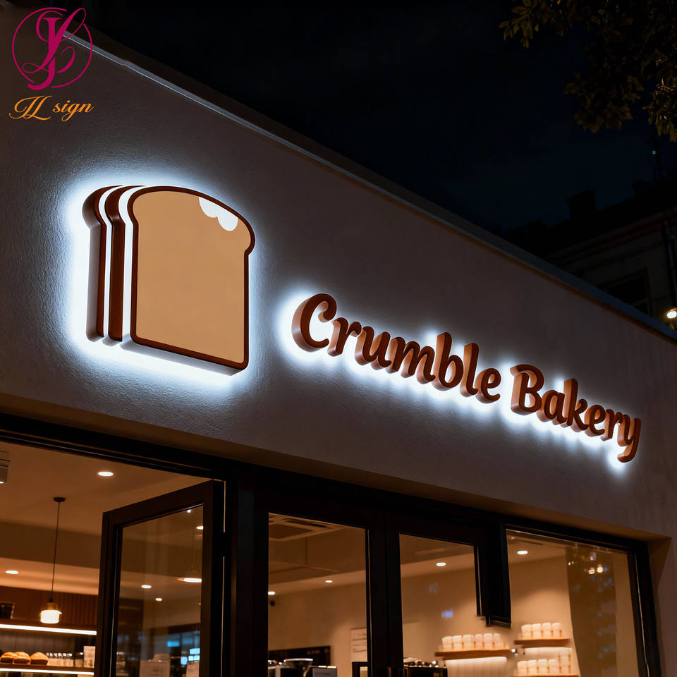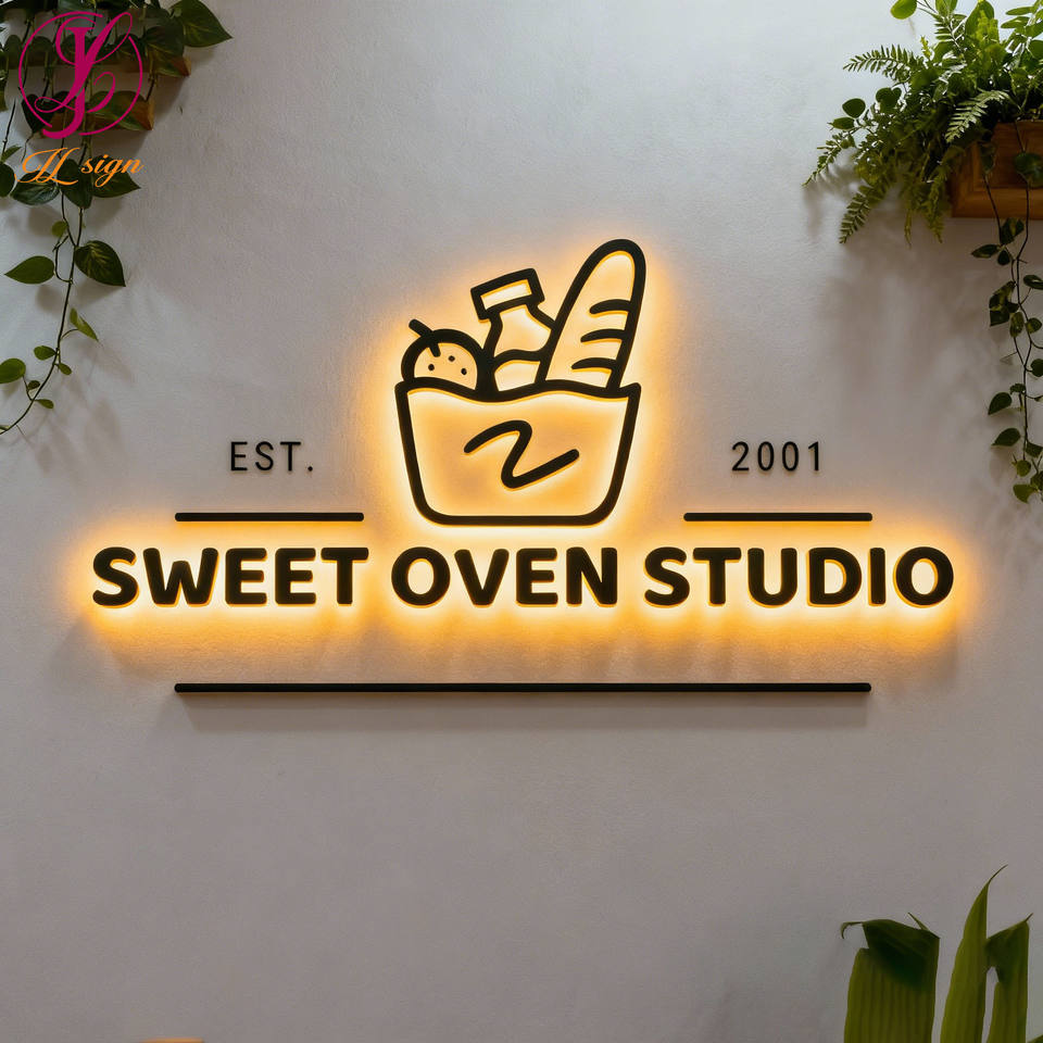 Insegna LED Retroilluminata per Panetteria, Lettere 3D in Acrilico, Logo Personalizzato, Segnaletica in Metallo Illuminata per Esterni per Pasticcerie