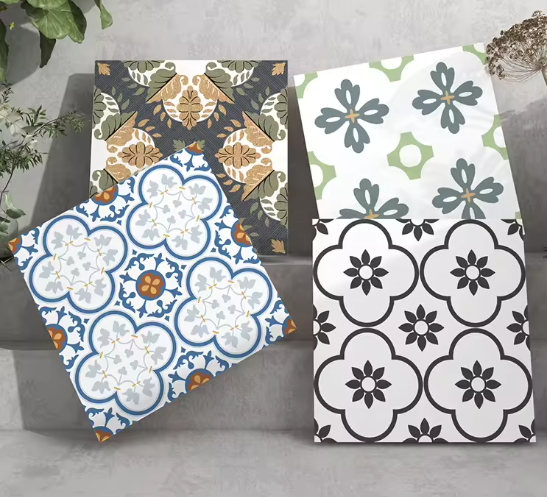 Piastrella in Porcellana Rustica con Motivo Floreale 400x400mm, Finitura Opaca, Antiscivolo per Pavimenti Interni di Camere da Letto e Soggiorni