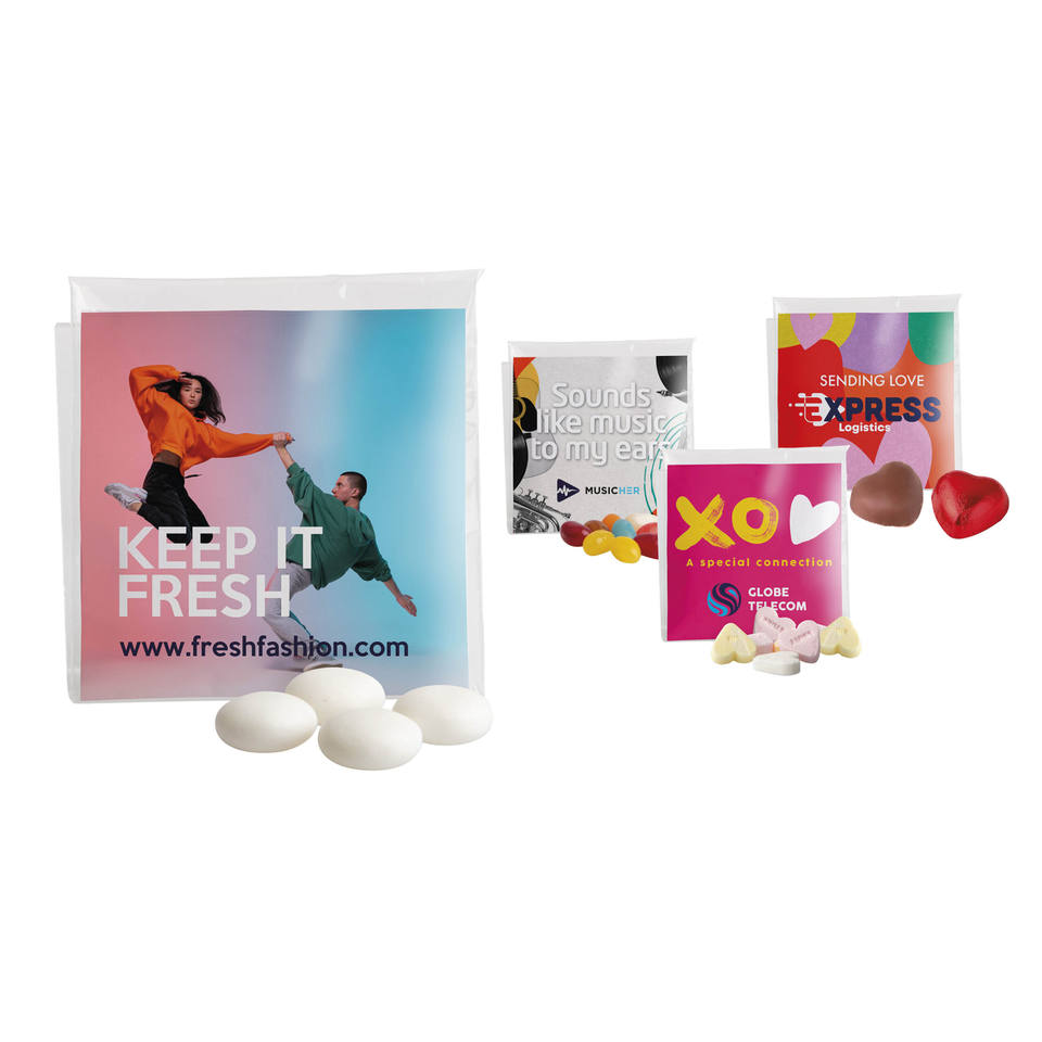 Fresh Fashion Sweety Pack Promotional Candy With Custom Branded Packaging For Marketing Campaigns