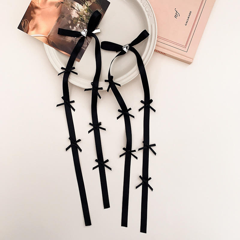 Fermaglio per capelli fatto a mano con nastro lungo in cristallo stile dolce, ispirato al balletto, con piccolo fiocco, accessorio per capelli da donna, regalo femminile