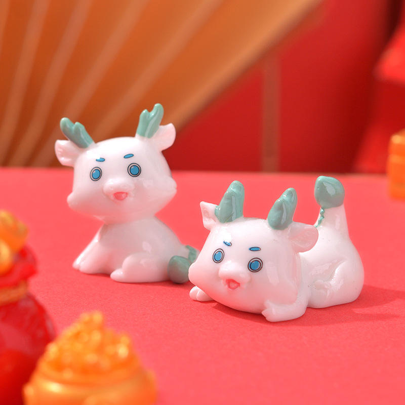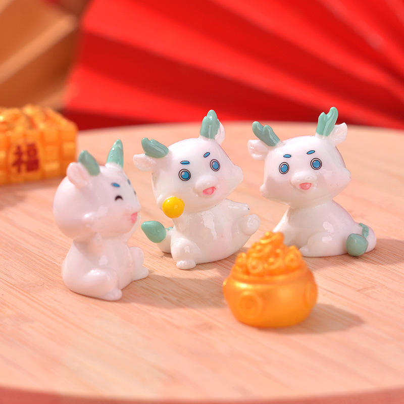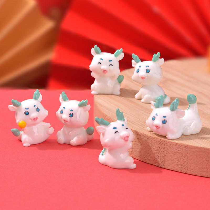 Fresco e carino piccolo Micro paesaggio Home Desktop piccoli ornamenti bianco drago blu nuovo anno in resina artigianale
