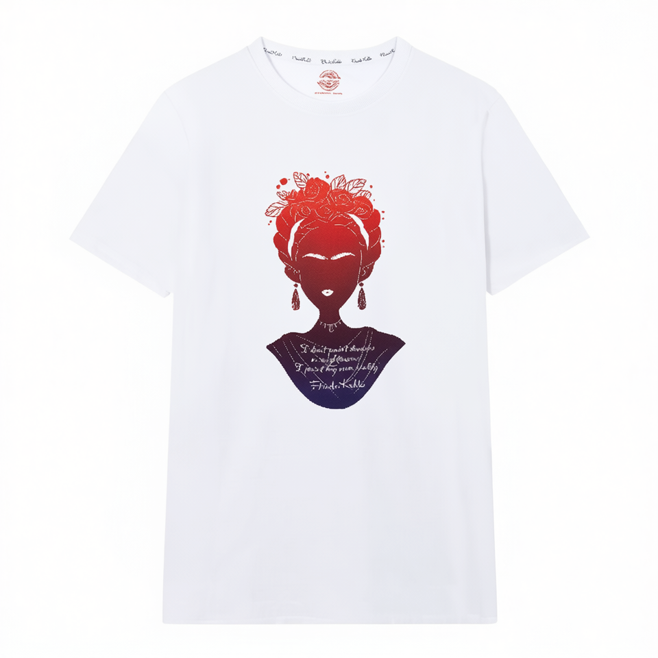 T-shirt Frida Kahlo Reality bianca da donna dal design artistico