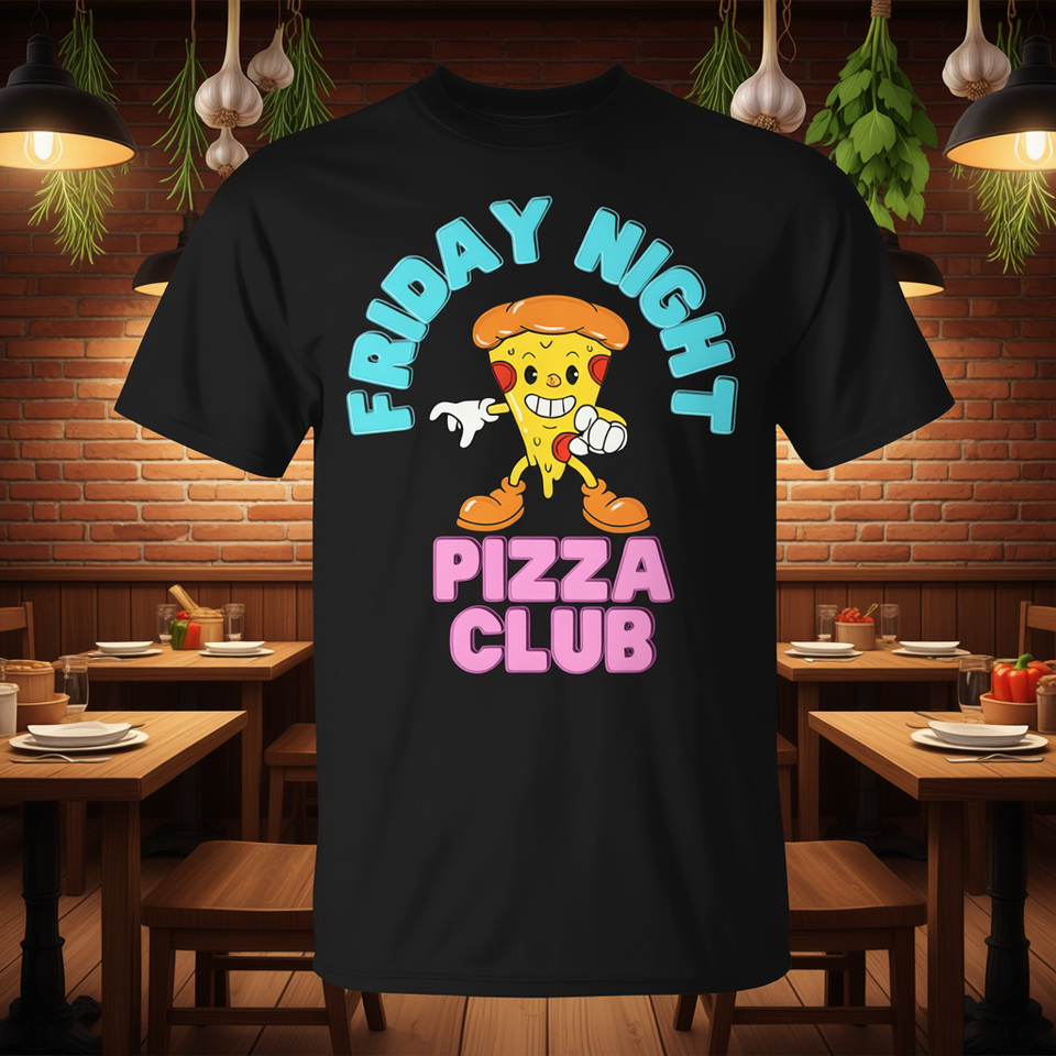 T-shirt Friday Night Pizza Club a tema cibo italiano, abbigliamento promozionale