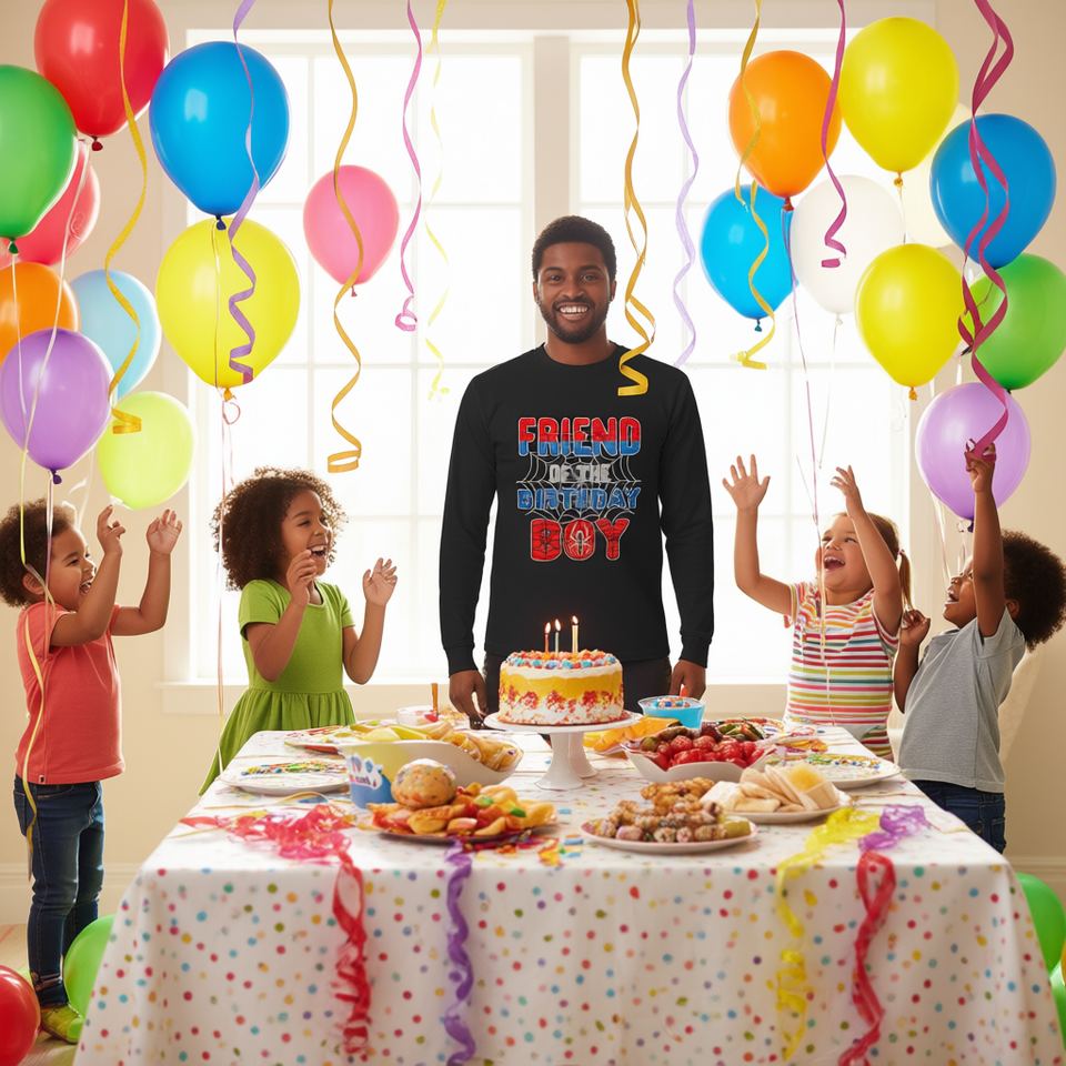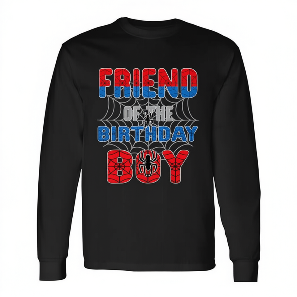 T-shirt a maniche lunghe con design a ragnatela per l'amico del compleanno, maglietta per la festa di compleanno