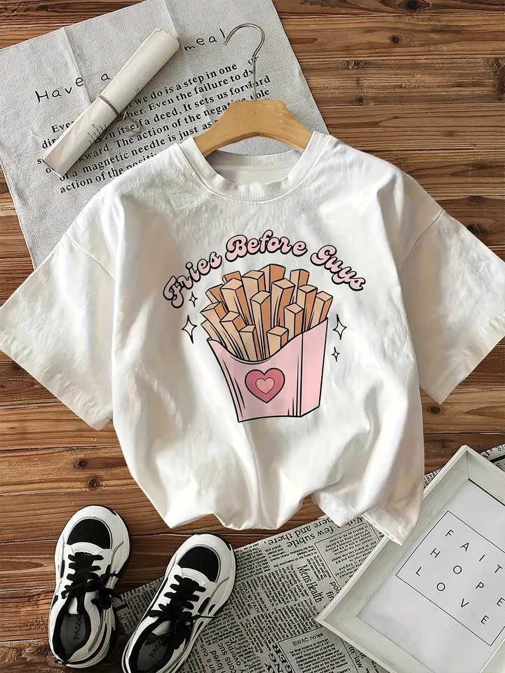 Fries Before Guys Graphic T-Shirt Women Crew Neck Short Sleeve Casual Loose Fit 100 Cotton Jersey Print Design