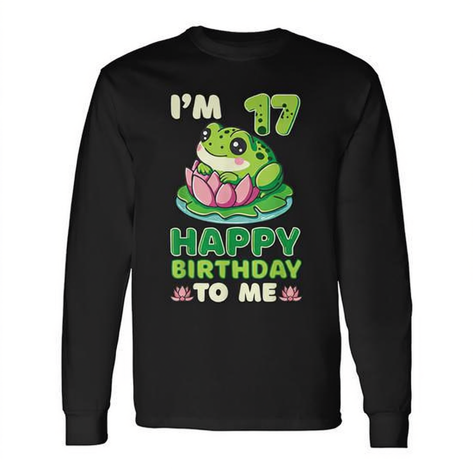 Frog 17th Birthday Party Celebration Lily Pad Nature Lover Long Sleeve T-Shirt