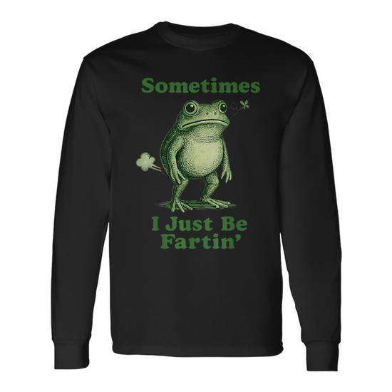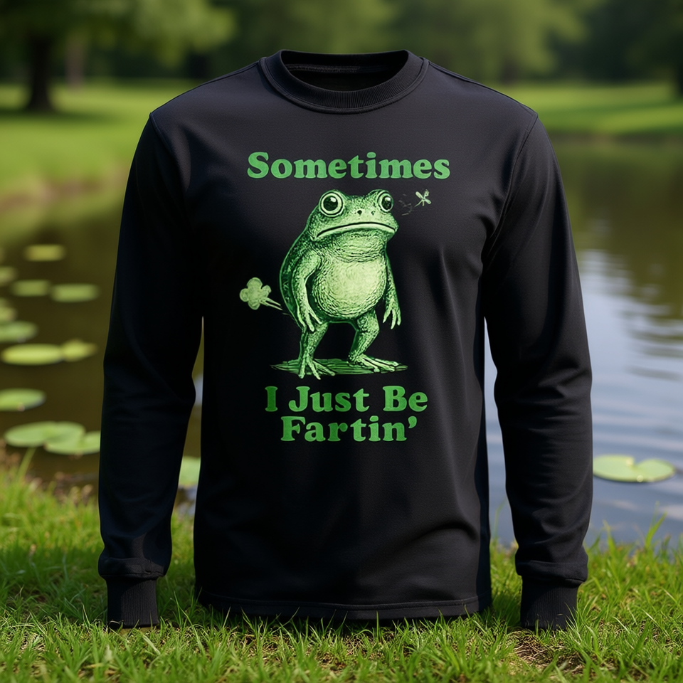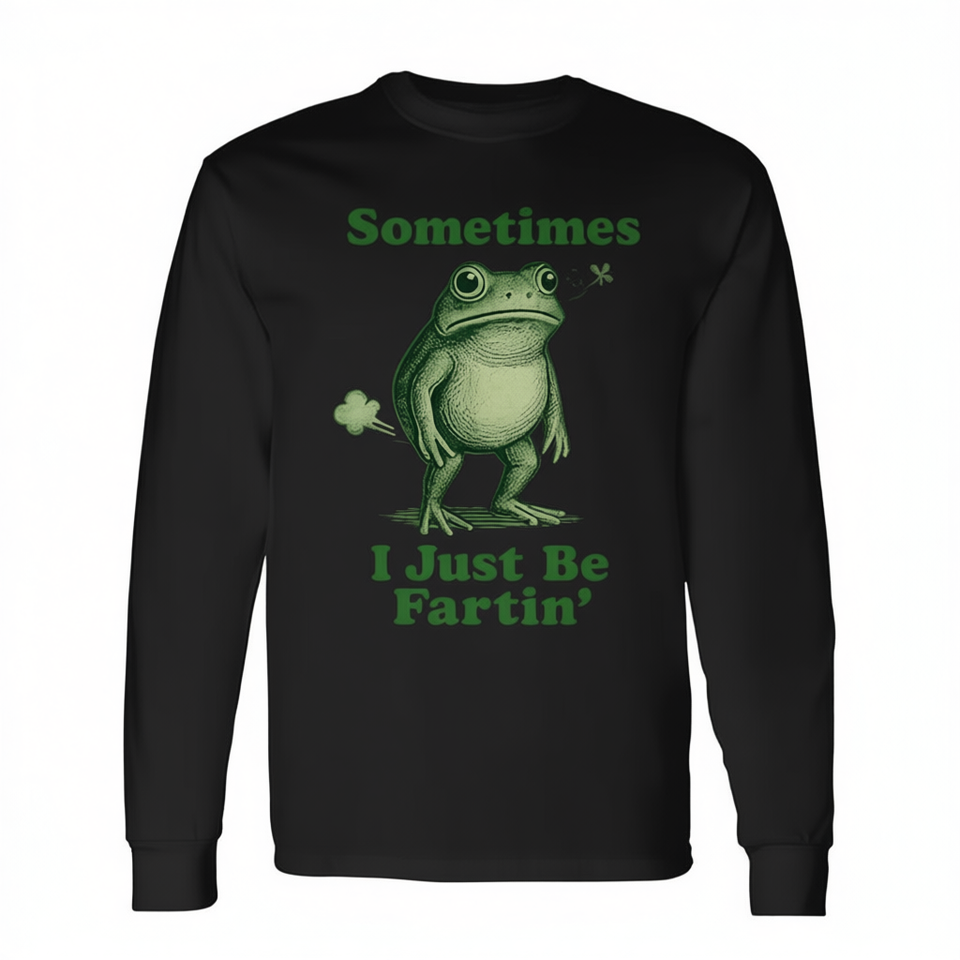 T-Shirt a Maniche Lunghe con Stampa di Rana, Girocollo Unisex per Adulti, Abbigliamento Promozionale con Serigrafia