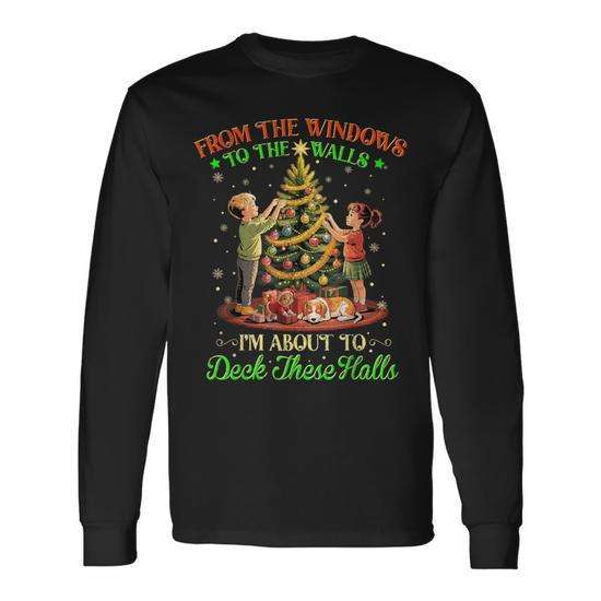 T-shirt a maniche lunghe con scritta “From The Windows To The Walls Christmas Tree Saying”.