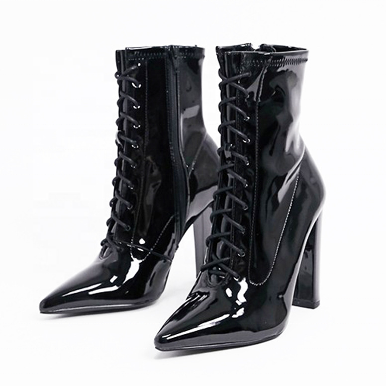 Stivaletti da Donna con Lacci Frontali, Punta Affusolata, Tacco Grosso, Cerniera Laterale, Taglia Grande 46