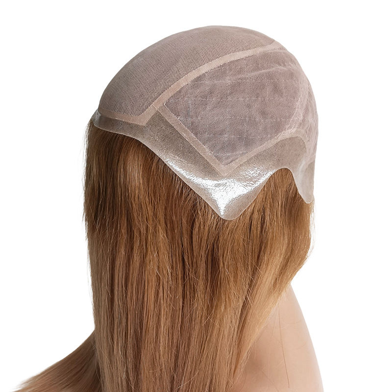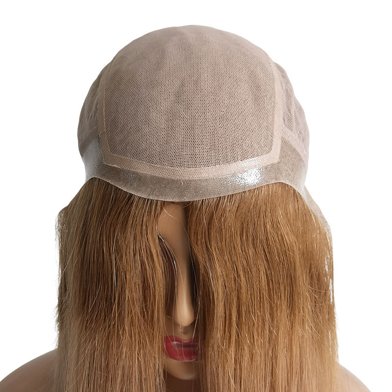 Base anteriore in pizzo di seta traducono rivestimento in pelle di colore biondo veri capelli umani vergini parrucche da donna