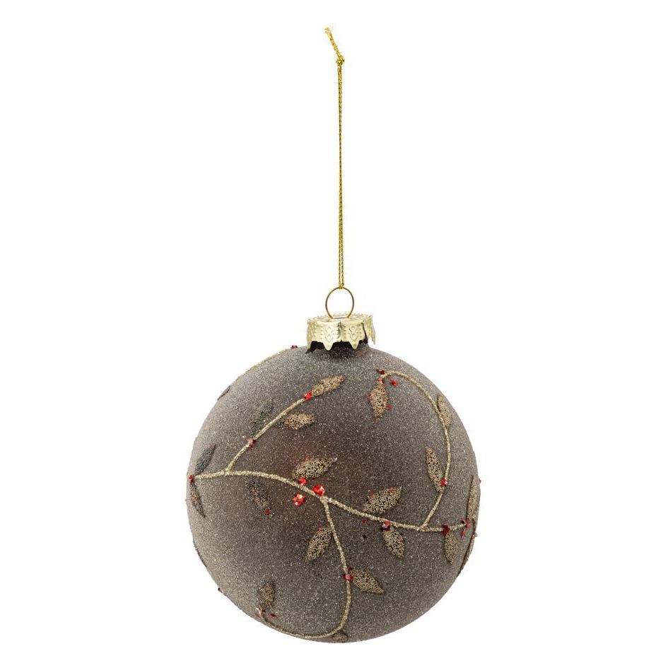Sfera di Vetro Satinato con Decorazione a Foglia, Diametro 10cm