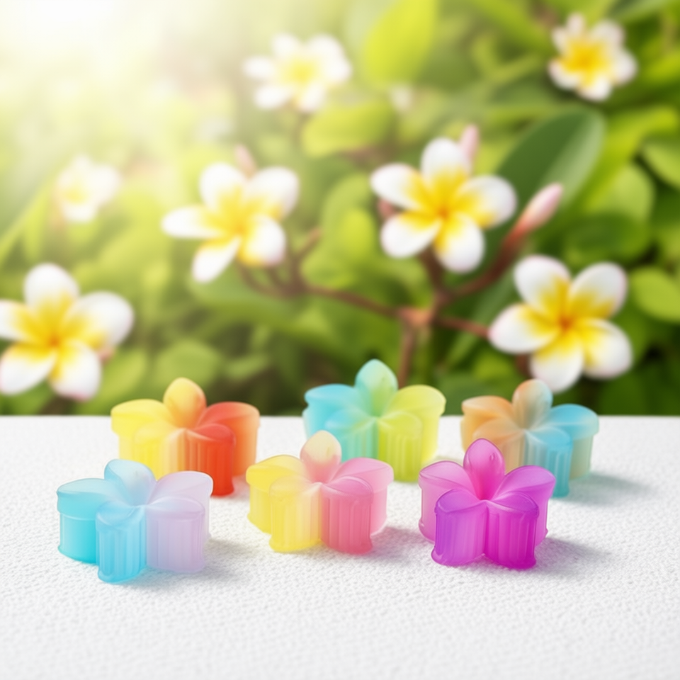 Fermaglio per capelli a forma di fiore di frangipani color gelatina satinata, 8 cm