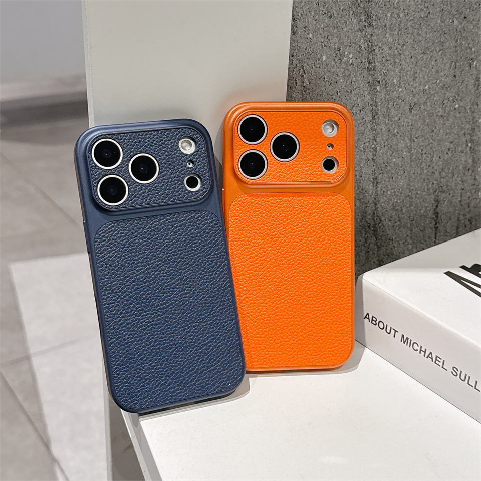 Frosted PU Leather Lychee Pattern Case Instantly Changes to 17 Pro Max Large Windows Cover for iPhone 16 15 Mobile Phone Cover