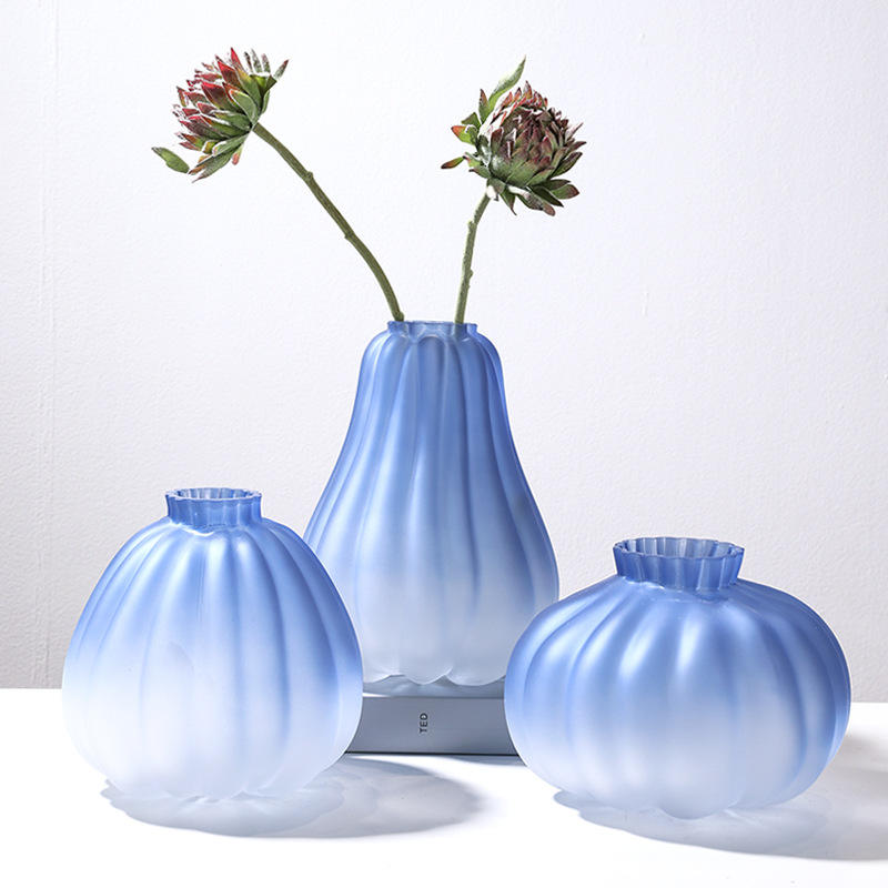 Vaso in Vetro Sfumato a Forma di Zucca Opaca, Vaso Idroponico in Vetro, Decorazione Moderna per la Casa, Vaso per Fiori