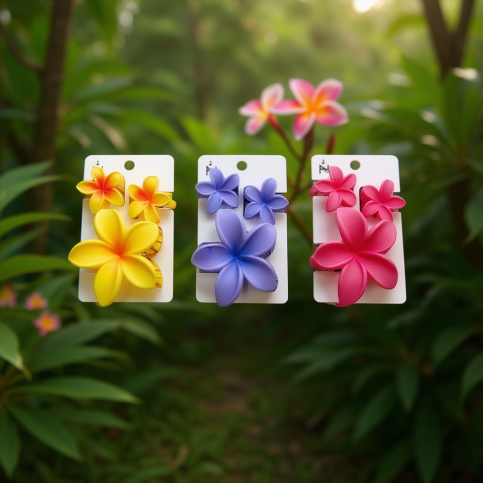 Set di Tre Mollette per Capelli Angelina Frangipani 10 Cm in Plastica a Forma di Fiore, Accessorio Casual per Donne