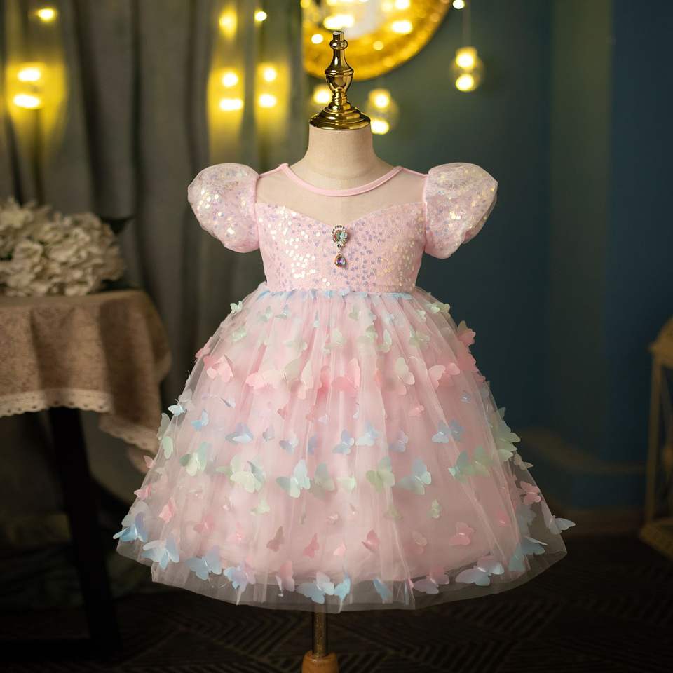 SelezionaColore: short sleeve-pink princess dress butterfly gem