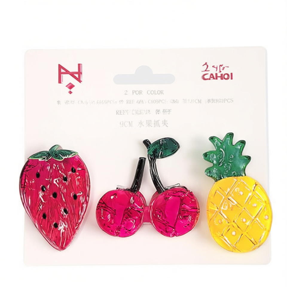 Fermaglio per capelli a forma di frutta da 9 cm con design fragola, ciliegia e ananas per donna
