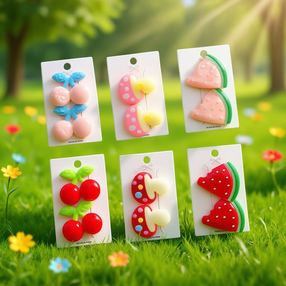 Set di fermagli per capelli a forma di frutta, 6 paia, design colorato ciliegia e anguria, per bambine e ragazze, accessori.