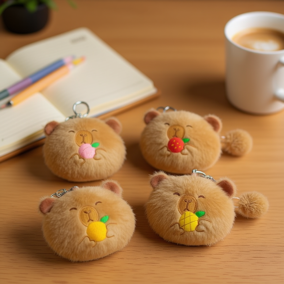 Portamonete in Peluche Serie Frutta Capibara 11x12cm Portachiavi Design Faccia di Orso