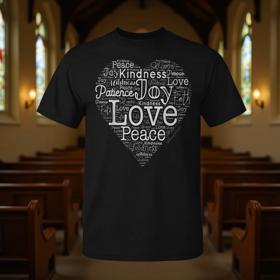 T-shirt Fruitage Of The Holy Spirit Heart Love, nera, unisex, taglia adulto M L XL, regali religiosi per la Chiesa, manica corta, girocollo