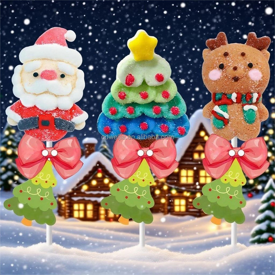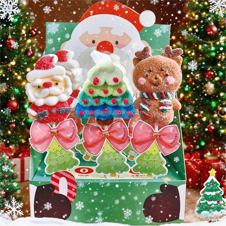 Fruity Caiyun Low Sugar 0 Fat Highly Aerated Marshmallow Cube Shape Christmas Gift Box Packaging Lollipop Safety Paper Stick
