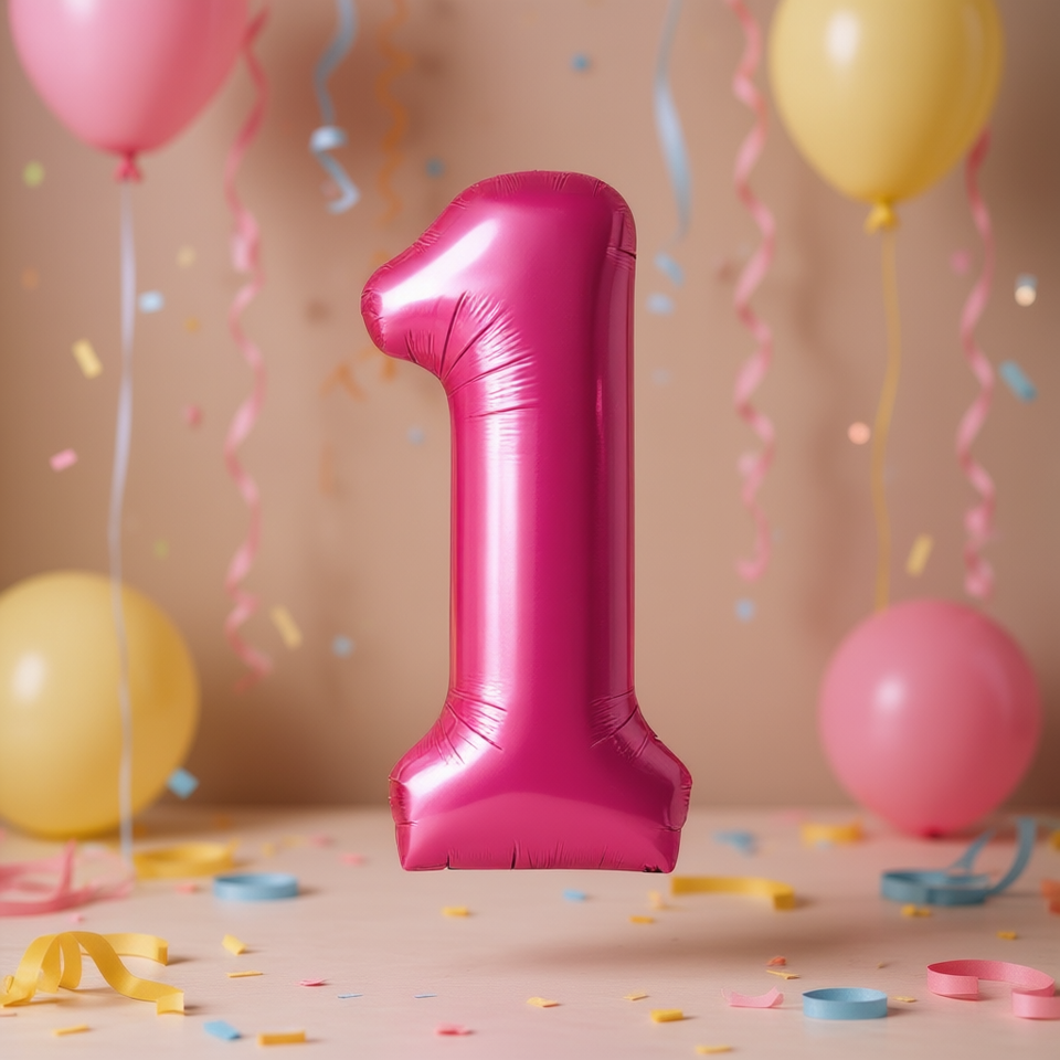 Party Love Foil Number 1 Balloon 80cm Pink Helium Filled Birthday Party Decoration Kids First Year Celebration