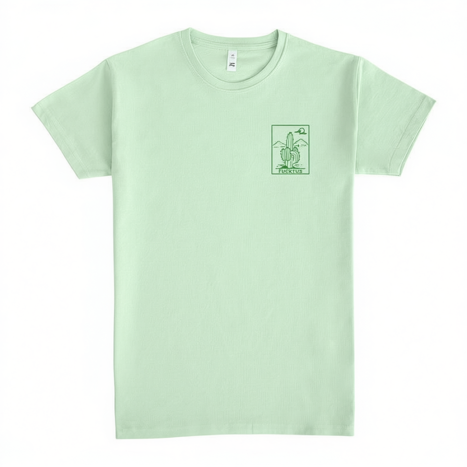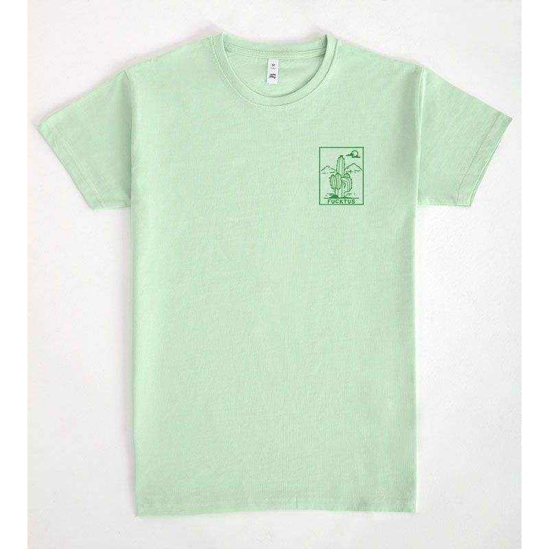 T-shirt Fucktus verde chiaro con design a piccolo cactus, abbigliamento promozionale