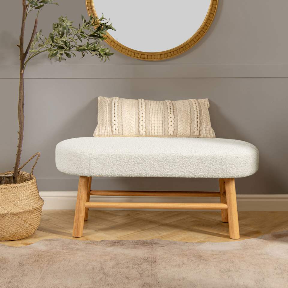 Fuji 42 \ "avorio bianco bouclé panca camera da letto con gambe in legno naturale