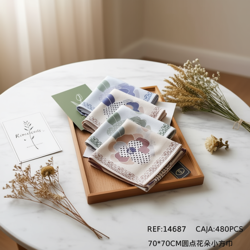 Fular Printed Cotton Handkerchief 70x70cm Modern Floral Design Ladies Gift Towel
