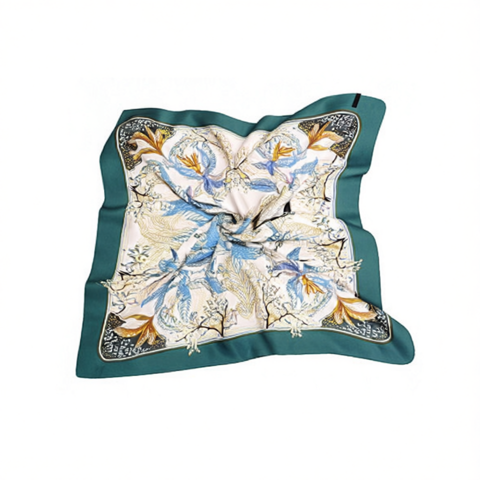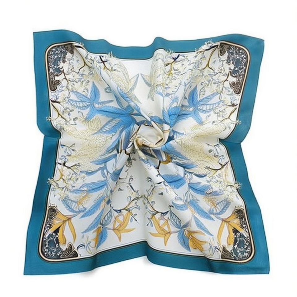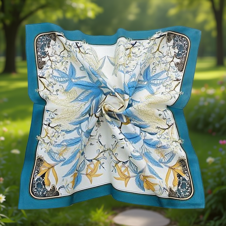 Silk Scarf 70x70Cm Leaf Print Square Women Elegant Fashion Accessory All Seasons 100% Silk