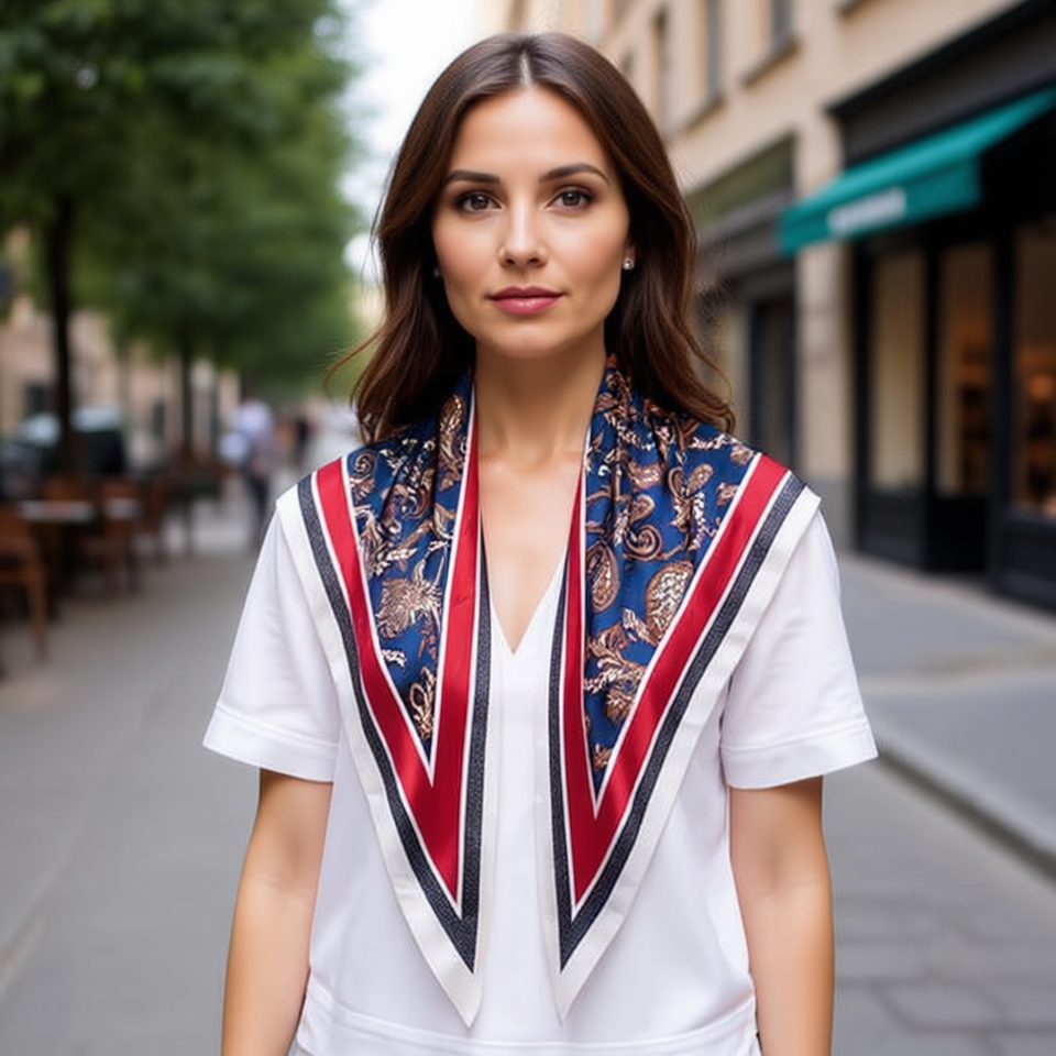 Foulard triangolare in seta 135x60cm con stampa digitale, elegante accessorio moda per donna