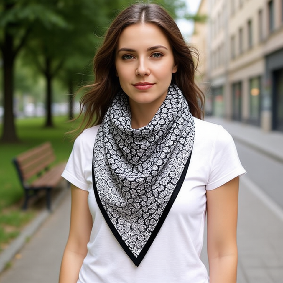 Sciarpa triangolare Fulare 135x60 cm stampata in poliestere e cotone, accessorio multifunzionale per il collo da donna per tutte le stagioni