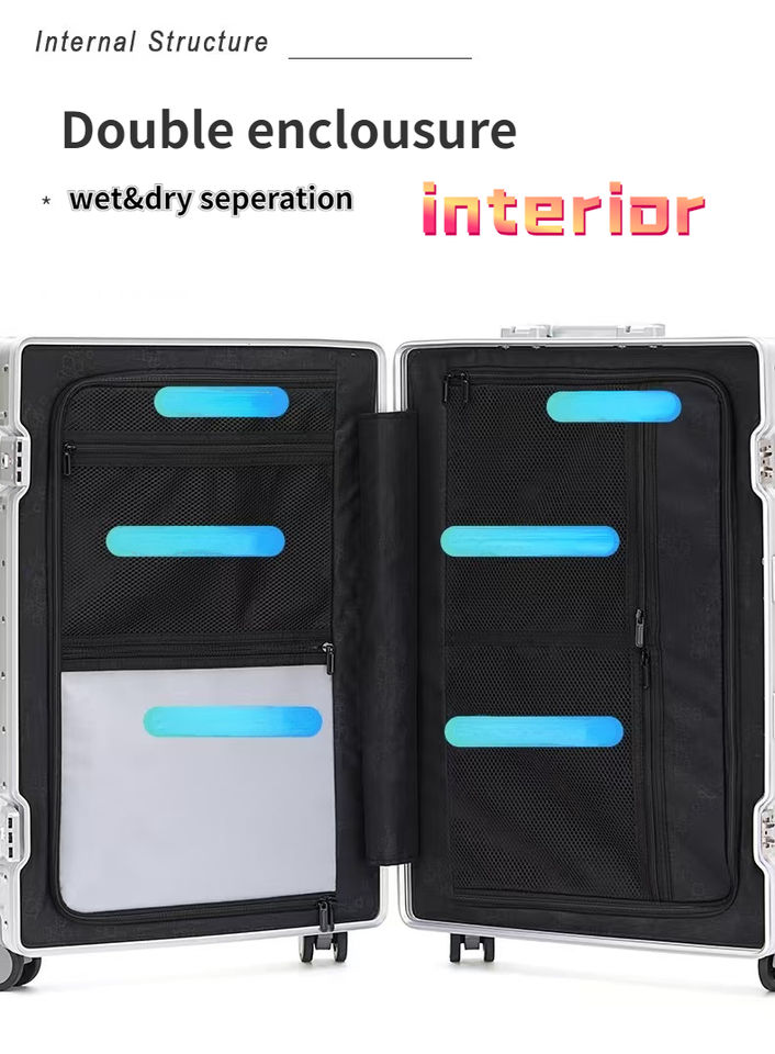 Trolley Bagaglio a Mano in Alluminio 20/26/29 Pollici con Serratura TSA e Manico in Pelle Bagaglio Classico in Metallo Stile Rimowa