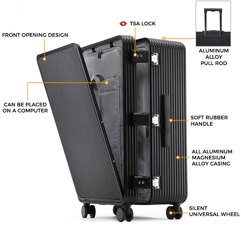 Valigia Trolley in Alluminio con Apertura Frontale, Impermeabile, Antifurto, con Serratura TSA, 20-24-30 Pollici, Unisex, per Viaggi d'Affari