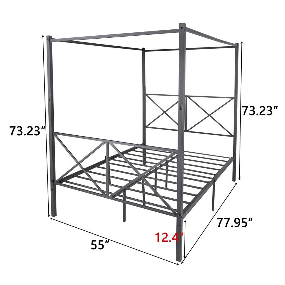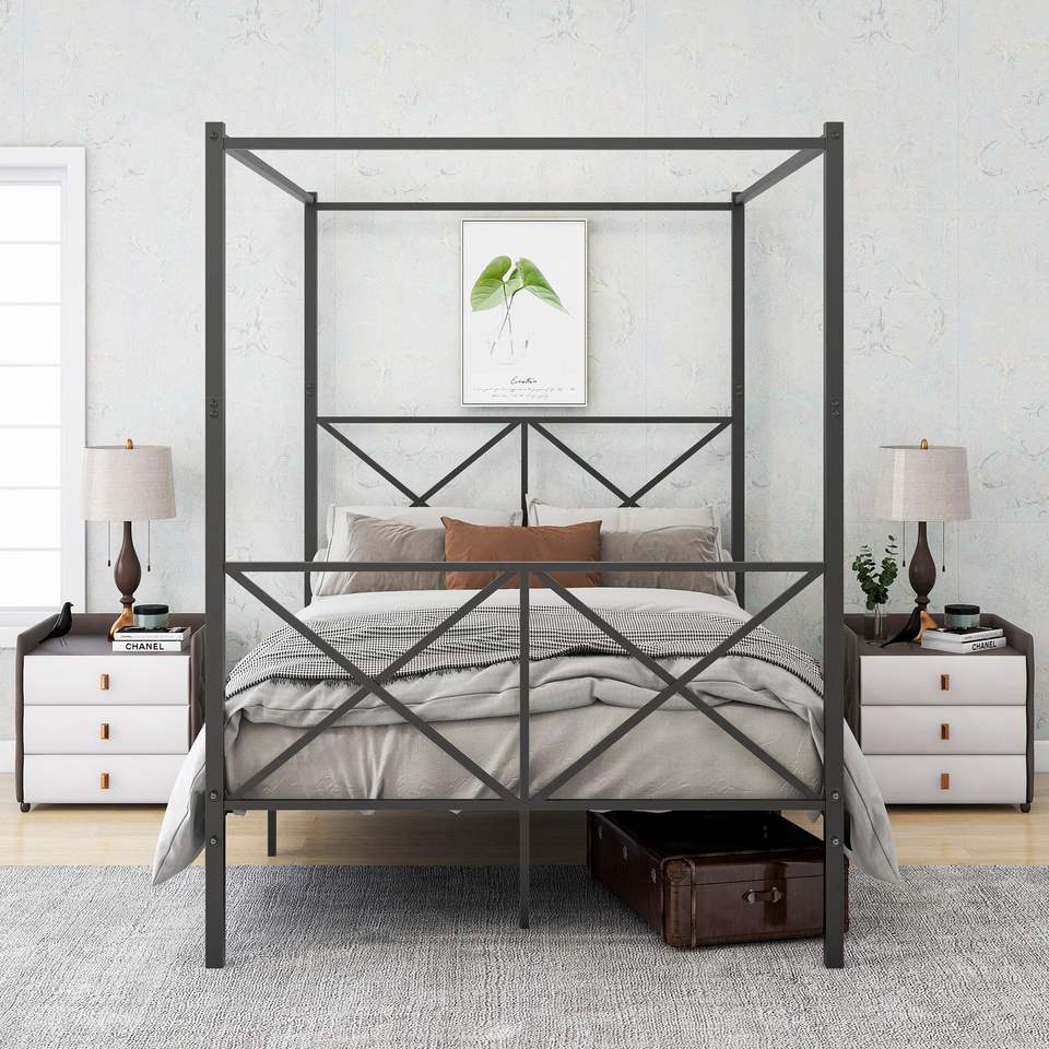 Struttura letto a baldacchino in metallo nero a X, stile piattaforma, dal design elegante