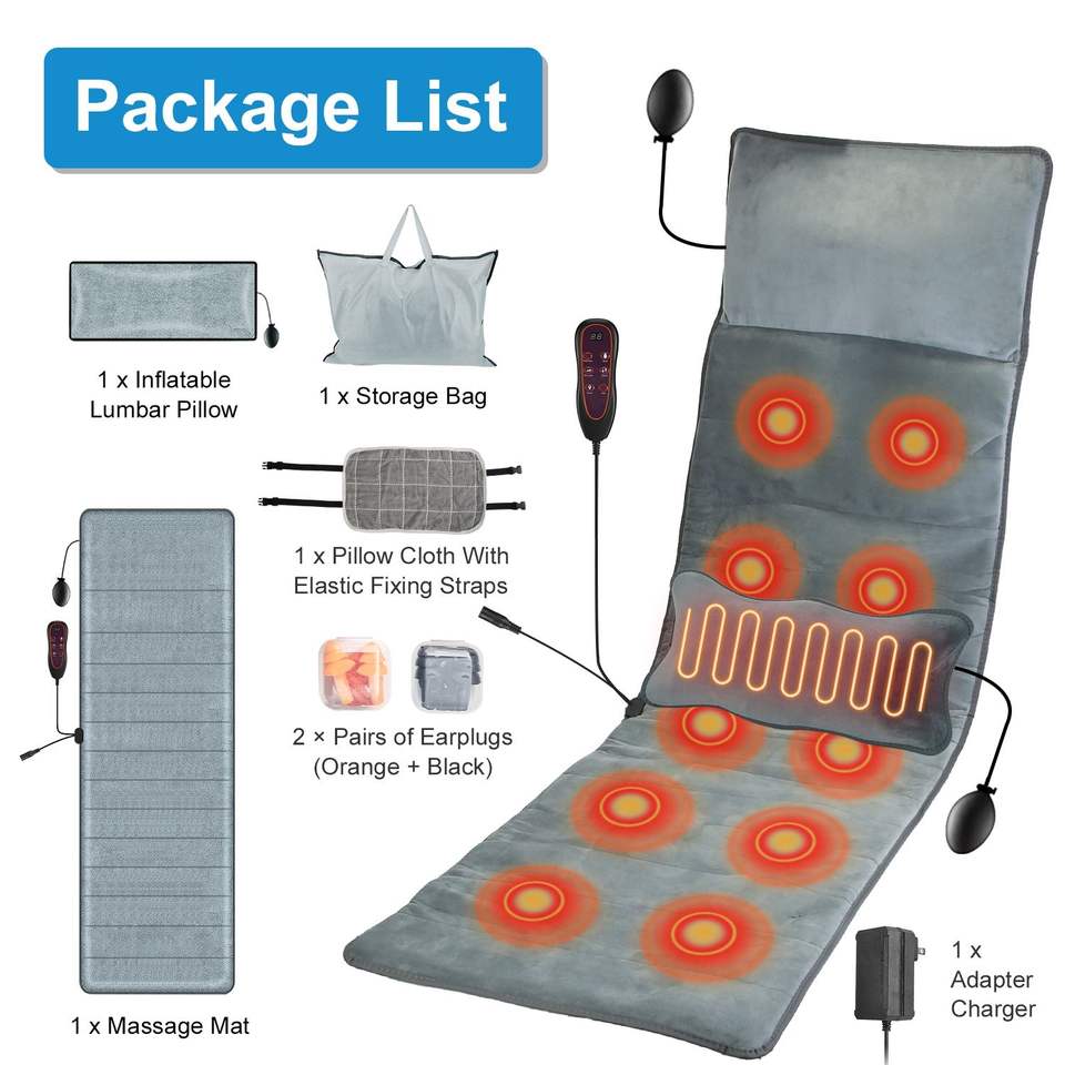 Tappetino Massaggiante Elettrico Completo con Calore e Vibrazione, Cuscino Gonfiabile per Testa e Schiena per Sedia e Materasso