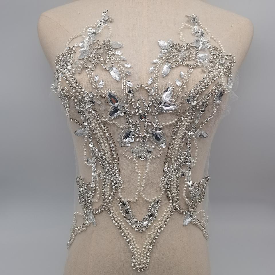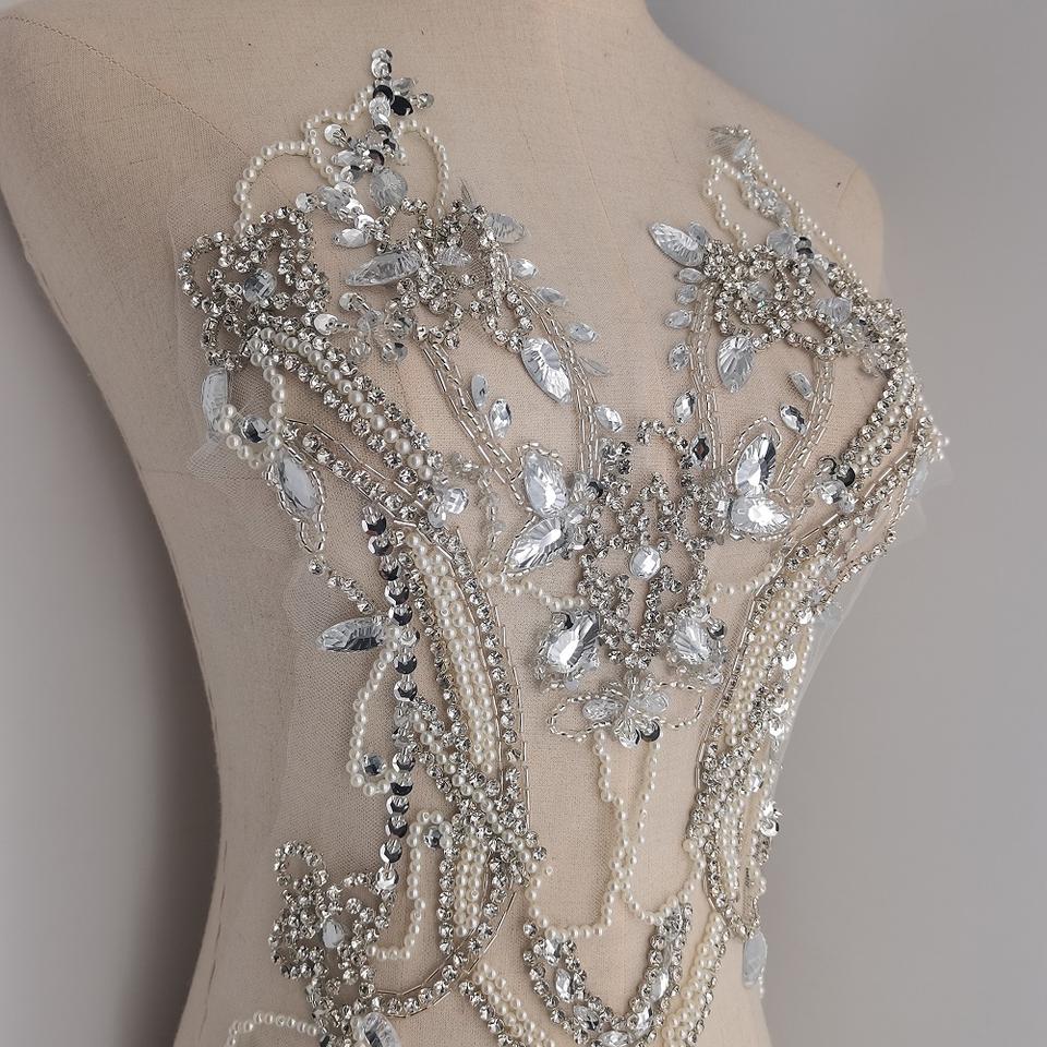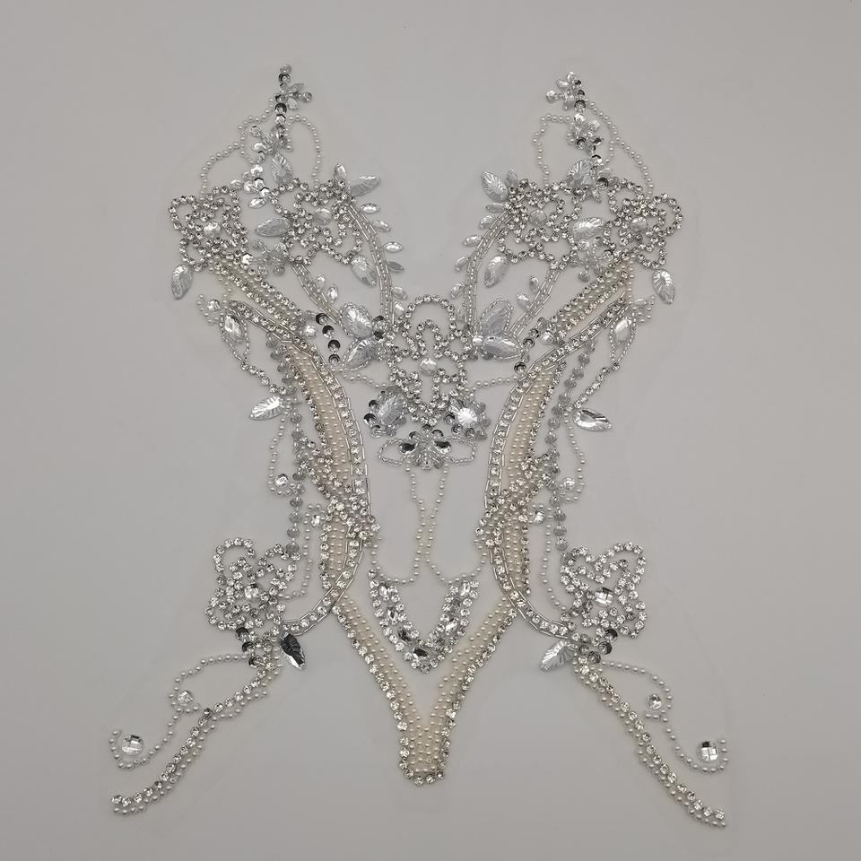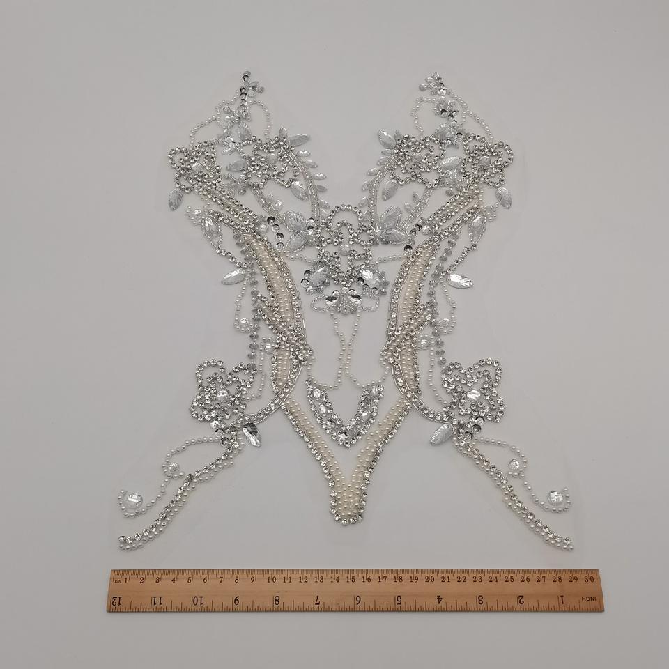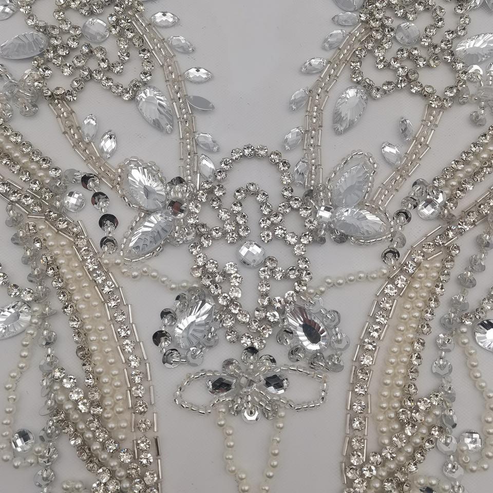 Tessuto in Pizzo con Applicazioni di Perline e Strass per Abiti da Sera, Collezione 2023