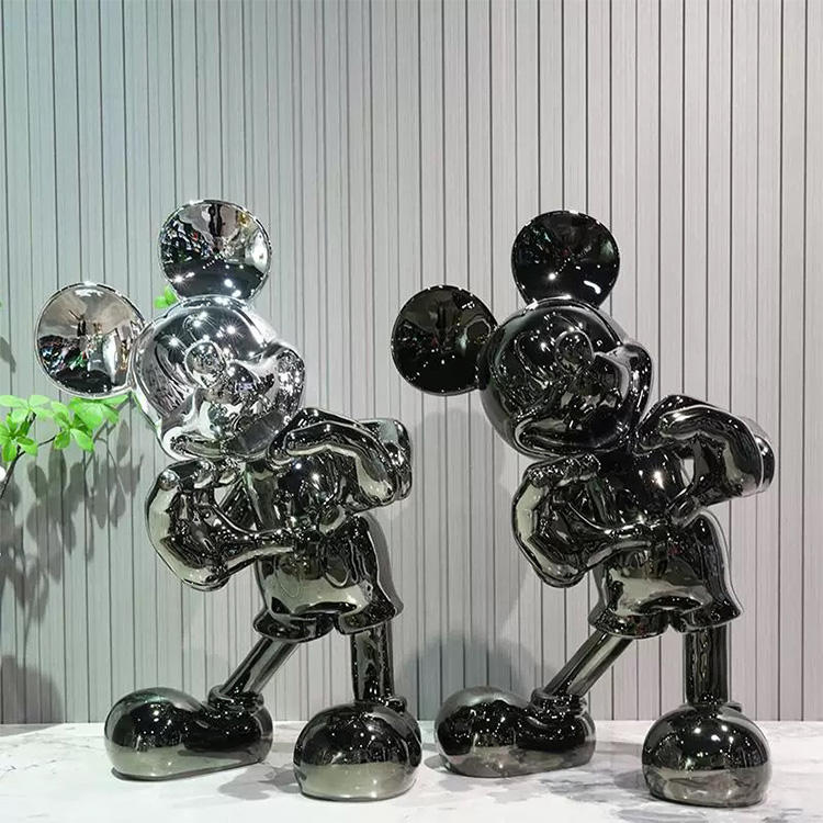 Scultura in Resina a Colori Cromati di Topolino e Minnie, Statua Decorativa da Tavolo Creativa, Topolino Boxeur per Arredamento Artistico