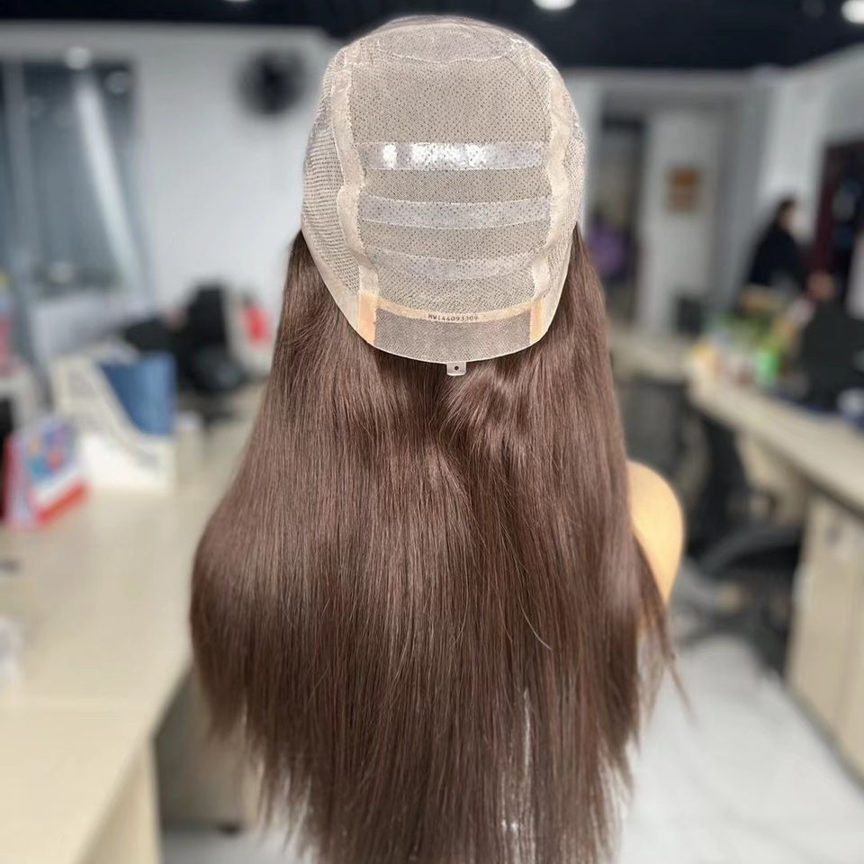 Full Hand Tied Glueless Human Hair Silicone Anti-slip Soft Base #4 Color Straight Medical Wig for Alopecia Patients Woman