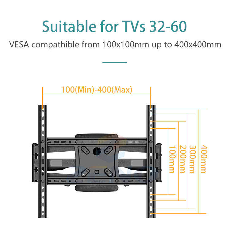Staffa TV articolata in Full Motion, resistente da 45KG, braccio oscillante a 160 °, adatto a schermi da 32-70 pollici, Design a basso profilo, spedizione veloce
