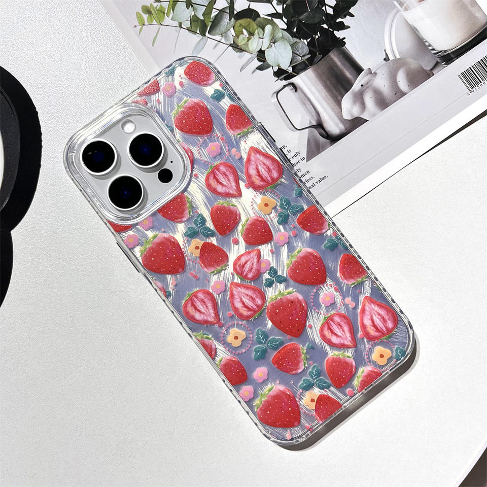 Cover posteriore per telefono cellulare in acrilico a schermo intero con stampa fotografica a fragola per Iphone 11 12 13 14 15 16 Pro Max Plus