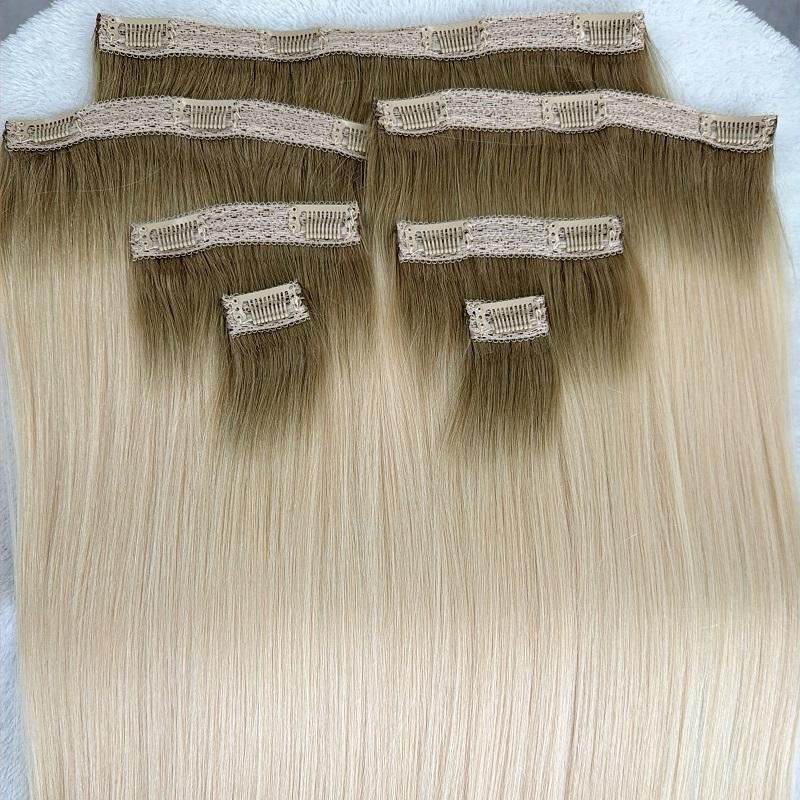 Extensioni per capelli umani lisci Full Shine Seamless Invisible Thin Weft, volume completo, 20 pollici, 7 pezzi, 200g, biondo chiaro, con clip