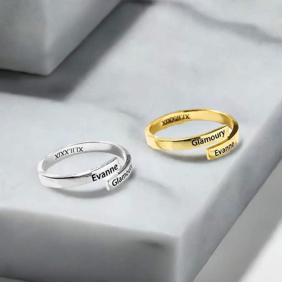 Anello Moda in Argento Sterling con 2 Nomi, Realizzato a Mano